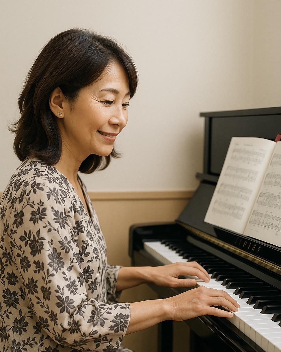 大人になってからピアノを始めた方でも安心して取り組めるよう、やさしく丁寧に、一歩ずつサポートしています。